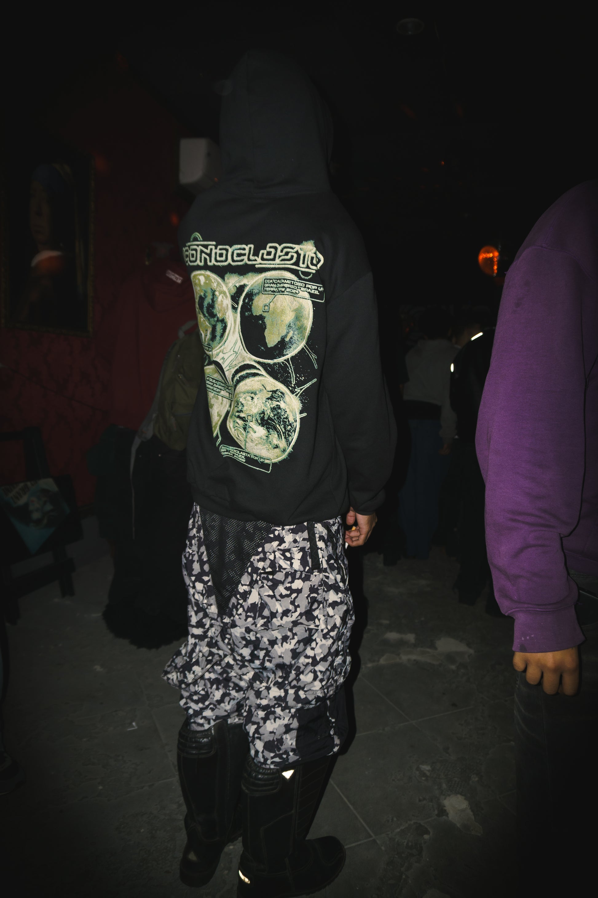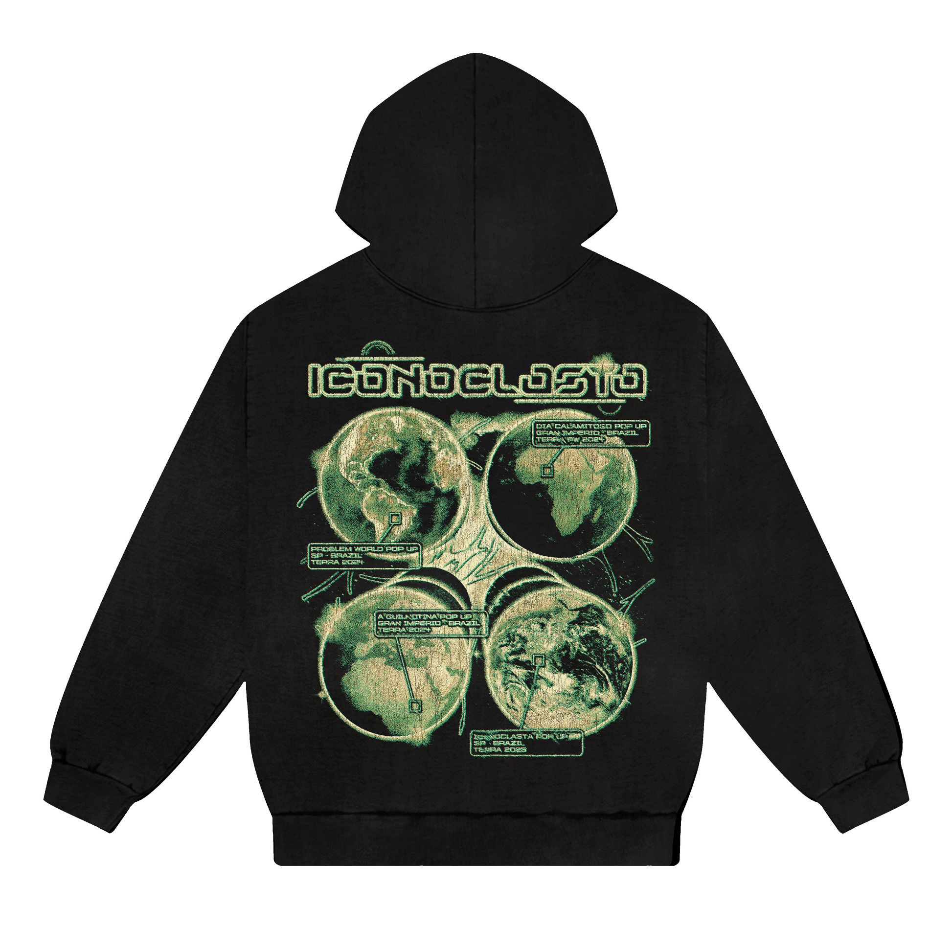 nesse moletom voce tem as duas interações do nosso mundo na turnê JSO “problem world POP up e “iconoclasta POP up” e as duas interações na TERRAPW “DIA CALAMITOSO” e a “GUILLOTINNA” numa fusão caótica de dimensões em um design insano.